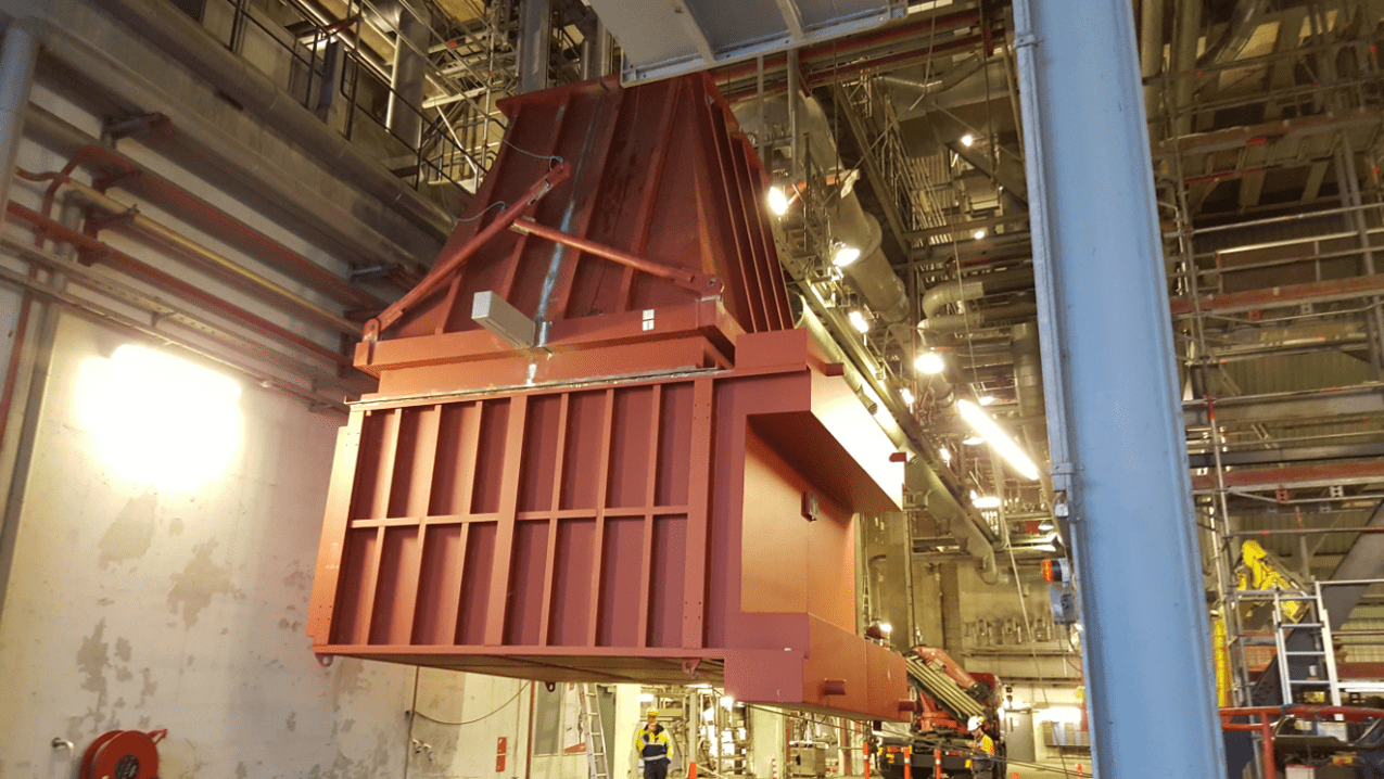 Avedøreværkets blok 1 er kommet tættere på at kunne fyre med træpiller i stedet for kul. Den største enkeltstående komponent i ombygningen er netop blevet monteret. Det er en 34 tons tung køler, der skal hænge i kedelbygningen i 20 meters højde.