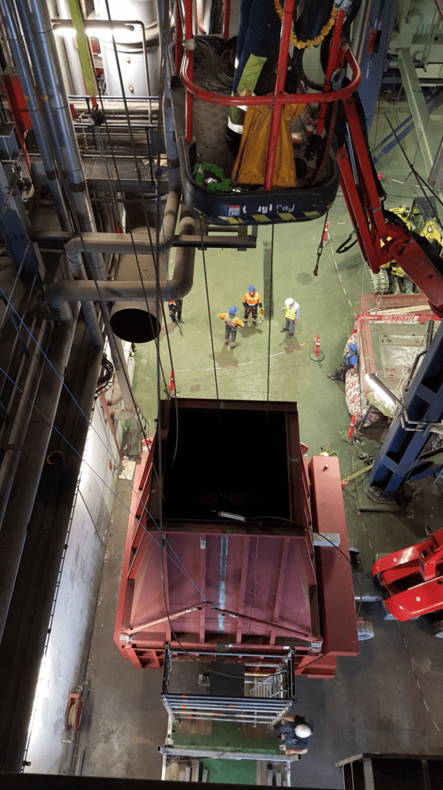 34 tons tung køler hejst op i 20 meter