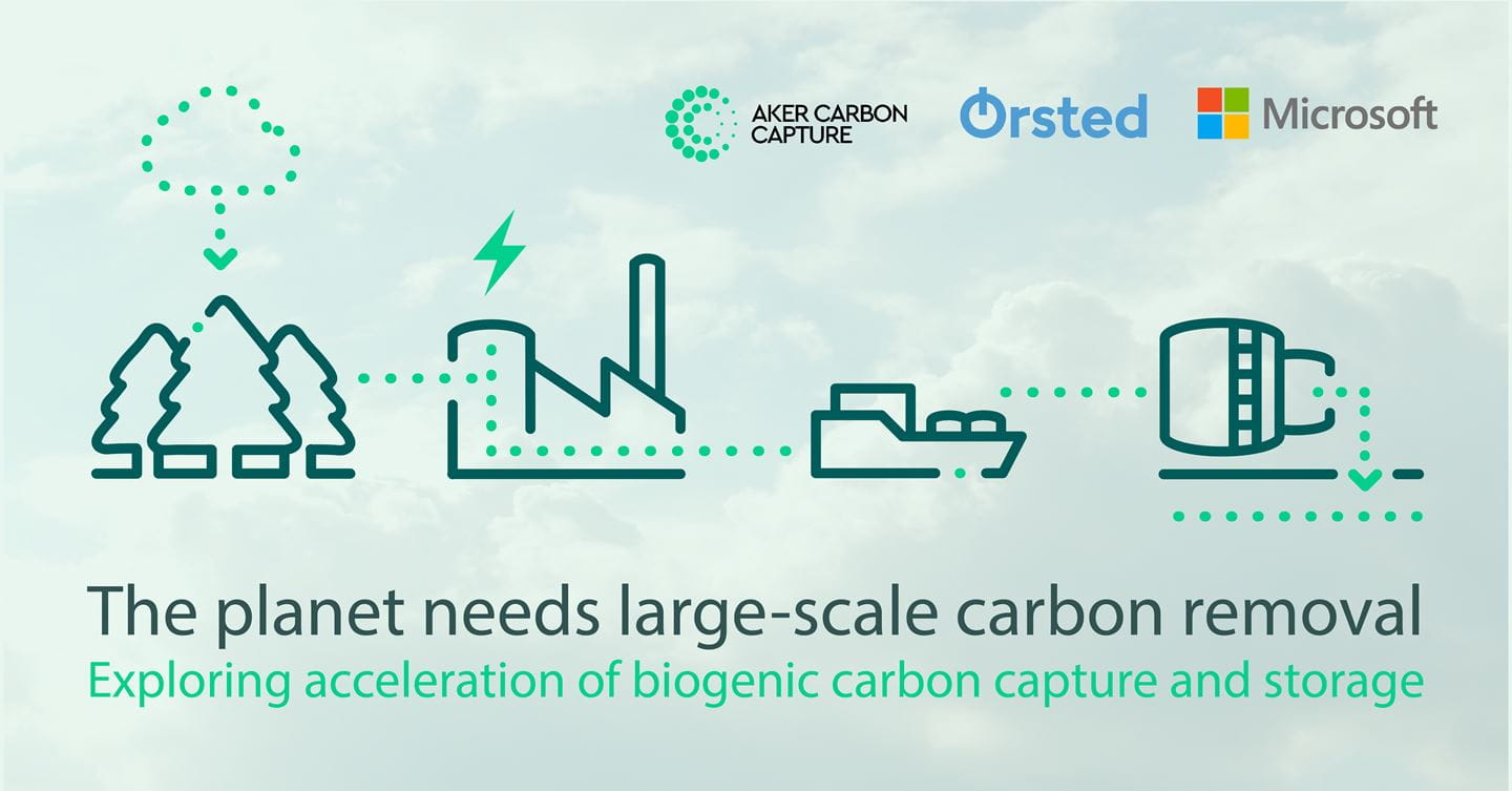 Ørsted, Aker Carbon Capture og Microsoft har underskrevet en hensigtserklæring om at undersøge mulighederne for at bidrage til udviklingen af CO2-fangst og -lagring på biomassefyrede kraftvarmeværker i Danmark.