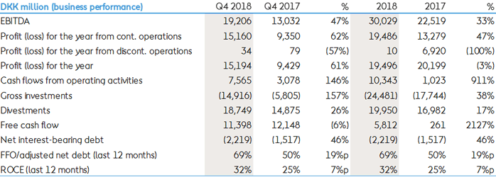 Net profit amounted to DKK 19.5 billion, our best result ever. This was an increase of DKK 6.2 billion compared to 2017.
