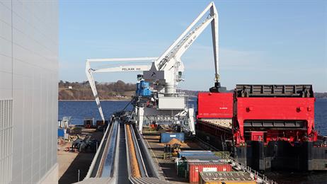 A new wood chip conveying system and two new unloading cranes at the quay will ensure efficient unloading of ships and barges. The cranes will lift the wood chips from the ships using closed crane grabs and place them in large funnels equipped with exhaust ventilation to reduce dust nuisances. From here, the wood chips will be transported on conveyor belts to the open wood chip storage facility.