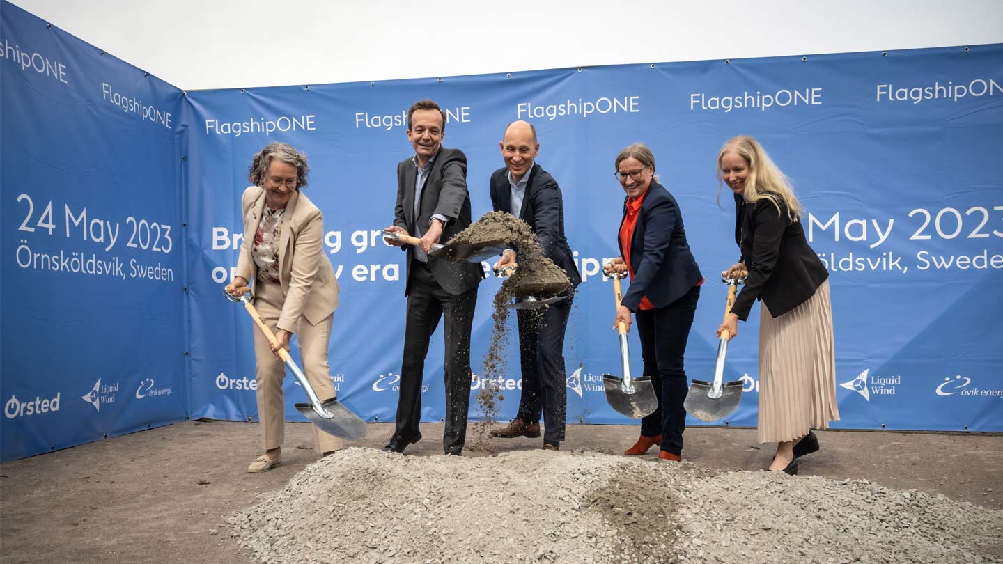 Among the speakers at the event were also Klimatklivet, a part of the Swedish Environmental Protection Agency, who have supported FlagshipONE with SEK 151 million. The groundbreaking was done by Anna Dahlberg, State Secretary to the Prime Minister of Sweden; Anna-Britta Åkerlind, Chair of the municipality board of Örnsköldsvik Municipality; Anders Nordstrøm, COO of Ørsted P2X; Claes Fredriksson, founder and CEO of Liquid Wind; and Kristina Säfsten, CEO of Övik Energi.