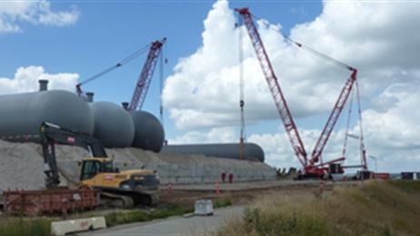 The eight large tanks are manufactured by the Belgian company G&G International. The tanks are all 38.5 metres long, have a diameter of 8.5 metres and a volume of 1,850 m3 and weigh as much as 290 tonnes a piece. In total, the eight tanks will provide storage capacity for 12,000 m3 liquefied gas.